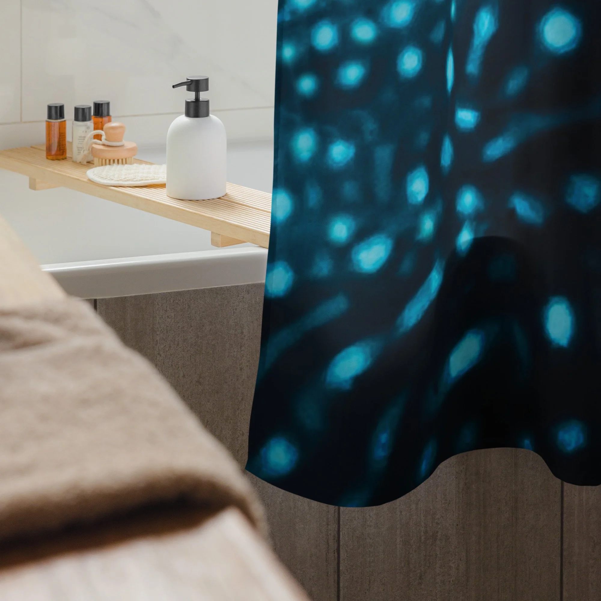 Made from water-resistant, quick-drying polyester that holds up to daily steam and splash—because real life isn’t always a calm sea, but your space can still feel like one.